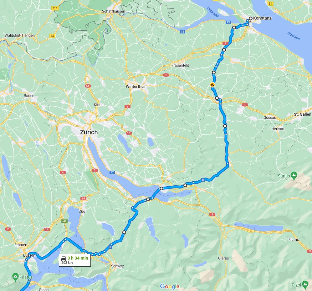 Sehenwürdigkeiten auf dem Weg nach Luzern: