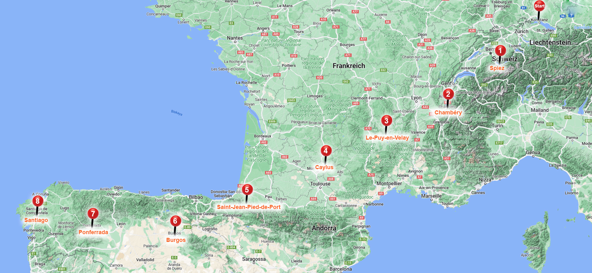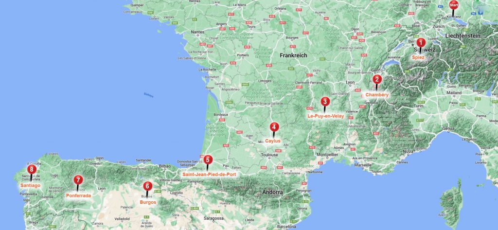 - Saint-Jean – Burgos: ca. 285 Km