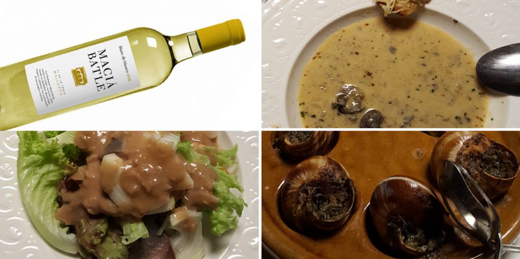 Mit einem 3-Gänge-Menue und einem edlen Tropfen mallorquinischen Weins stimmen wir uns auf diesem Planungstreffen ein. Es gibt Schnecken und Matjes.