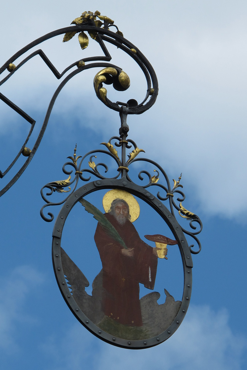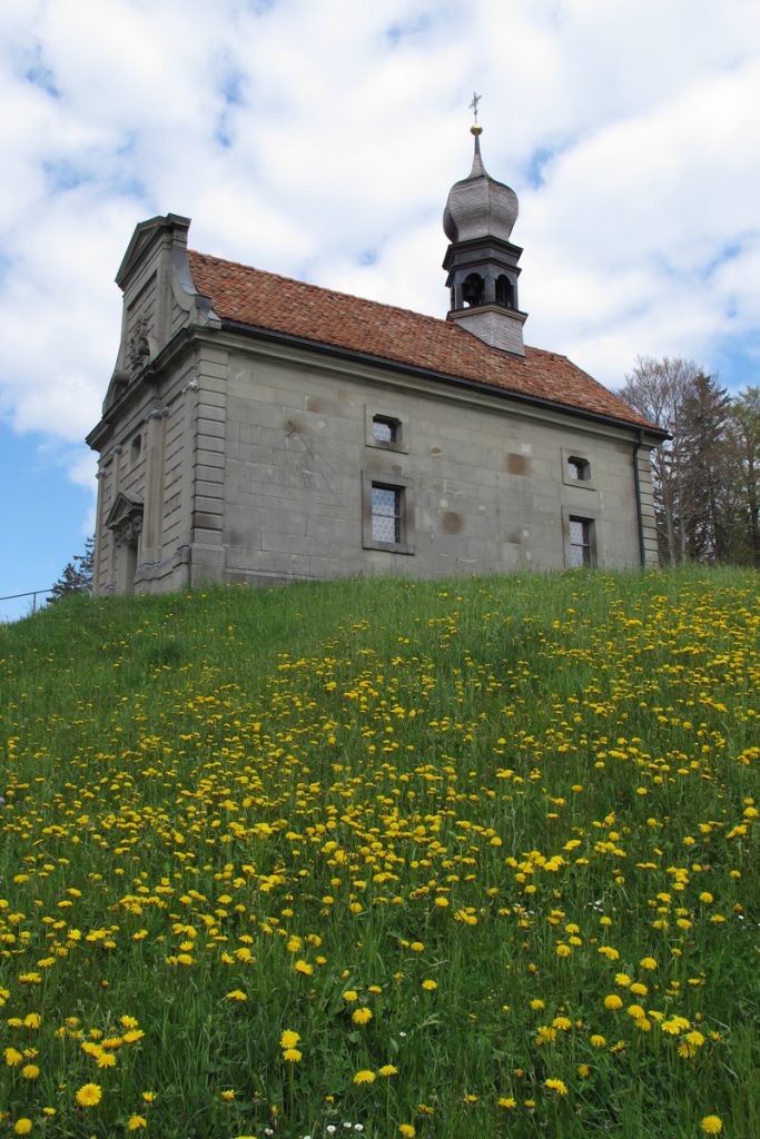 Nach 2 Stunden Fahrt machen wir kurz vor Einsiedeln in dem wunderschönen Landgasthof St. Meinrad auf dem Etzelpass unsere erste Rast. Bei einer köstlichen Dickebohnen-Suppe und einem alkoholfreien Hefeweizen, holen wir uns in einer kleinen Kapelle nebenan unseren ersten Pilgerstempel.