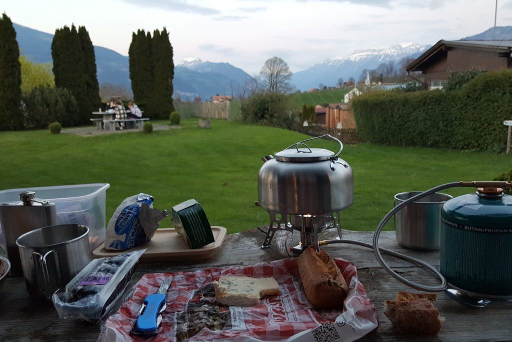 Nach weiteren drei Stunden Fahrt erreichen wir gegen 20 Uhr unser erstes Quartier auf einem idyllischen Campingplatz in Äschi zwischen Spiez und Interlaken, wo eine schnuckelige Blockhütte auf uns wartet. Nach einem zünftigen Vesper schlafen wir auf dem Boden auf Isomatten weich gebettet in unseren Schlafsäcken ein.