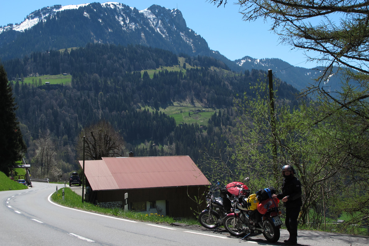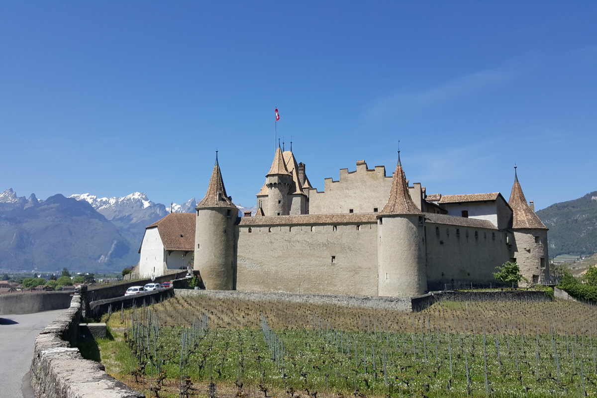 Durch die Täler und über die Pässe der schweizer Hochalpen, zwischen blumigen Wiesen (es ist Frühling), vorbei am Mont Blanc rollen wir in wärmere Gefilde, aus denen uns kräftige laue Winde entgegenwehen und sich die Almen in Weingüter verwandelt haben.